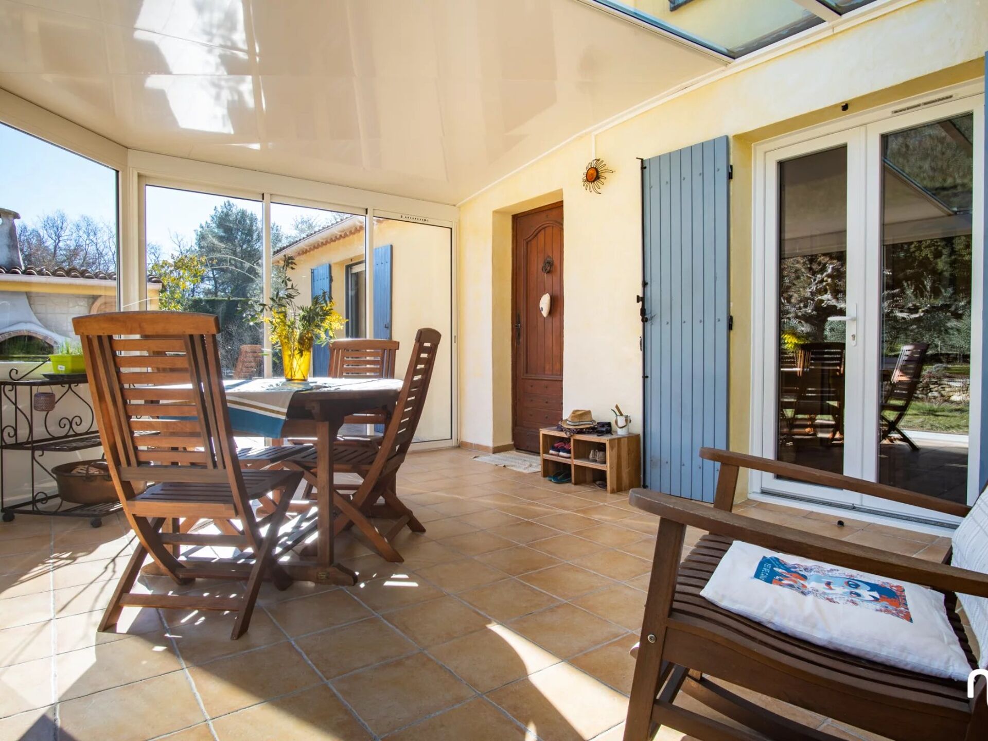 Une véranda de 19 m², véritable pièce de vie supplémentaire ouverte sur le jardin,